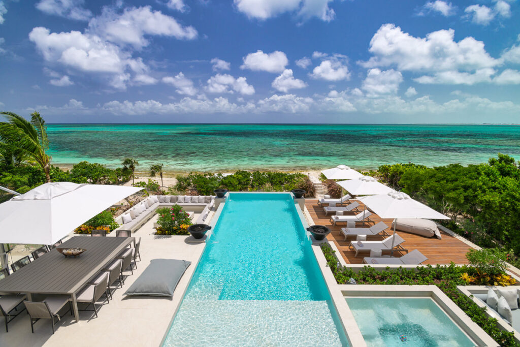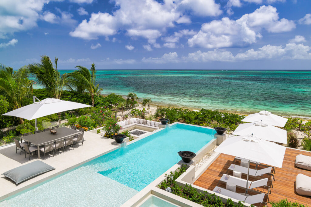 a contemporary oceanfront villa located on the west end of Grace Bay Beach on Smith’s Reef in Providenciales