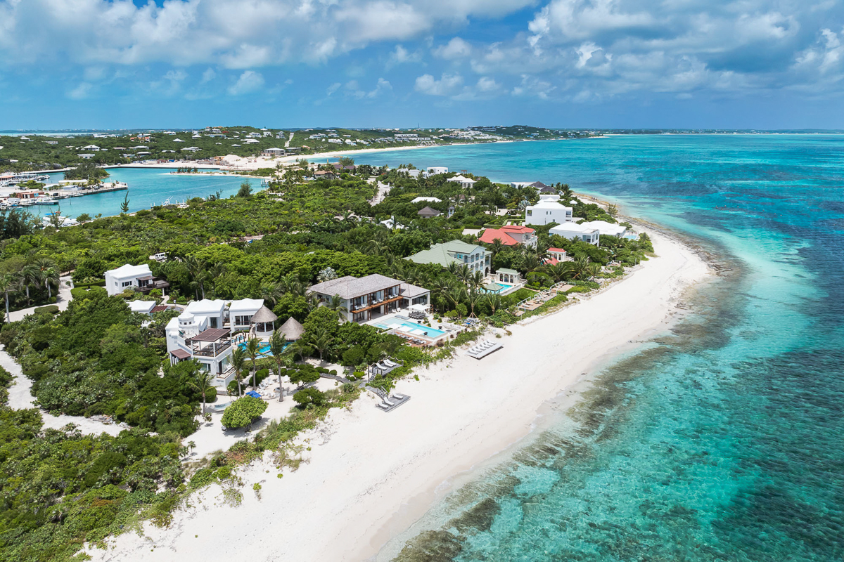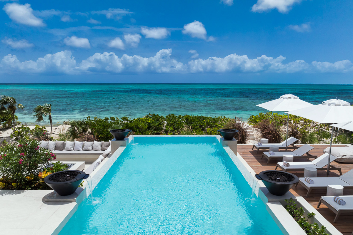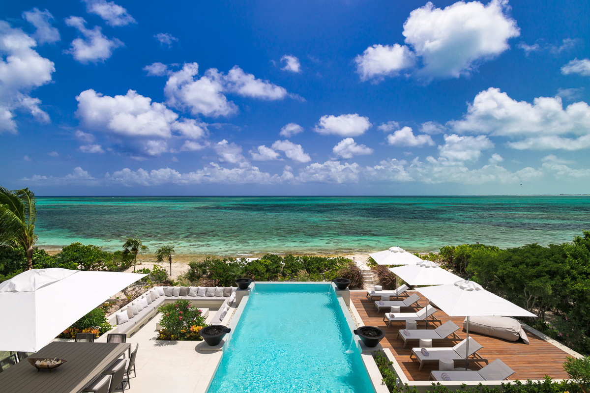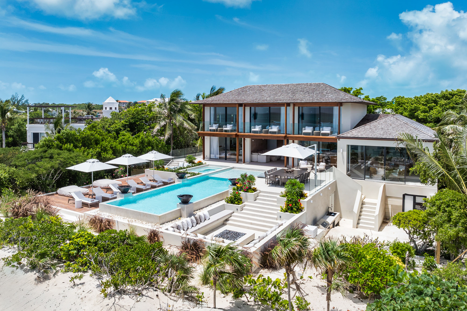 a contemporary oceanfront villa located on the west end of Grace Bay Beach on Smith’s Reef in Providenciales