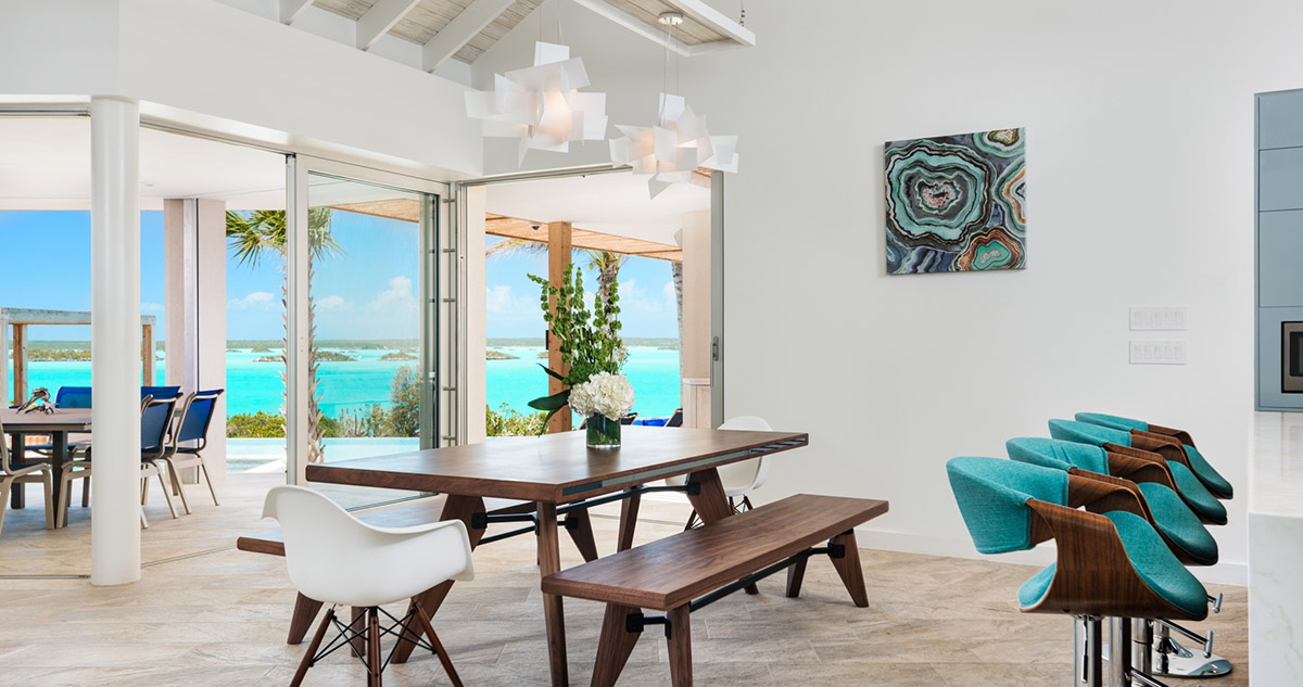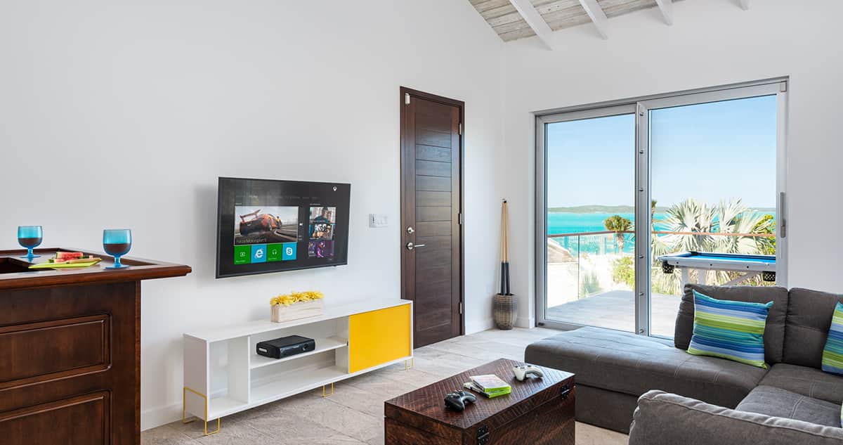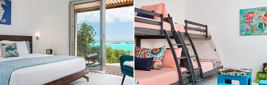 Con cuatro habitaciones en suite distribuidas con buen gusto y estilo alrededor de la gran piscina y el jacuzzi de Villa Alinna, los huéspedes podrán tener la máxima sensación de lujo y privacidad al tiempo que disfrutan de las vistas del Chalk Sound. El quinto dormitorio está dispuesto como una habitación para niños con dos literas (una de dos plazas y otra de una plaza) y baño en suite. El espacio de la sala de estar interior está diseñado con un concepto amplio y abierto. La cocina está equipada con artefactos de primera calidad: placa de cocina eléctrica, horno, microondas y máquina para hacer hielo pequeña. La sala de estar tiene un gran sofá modular con capacidad para todos los huéspedes y un gran monitor de pantalla plana con televisión por cable estándar. La residencia también tiene un sistema de sonido envolvente interior y exterior que funciona por medio de una aplicación que se puede descargar en un smartphone, de manera gratuita.