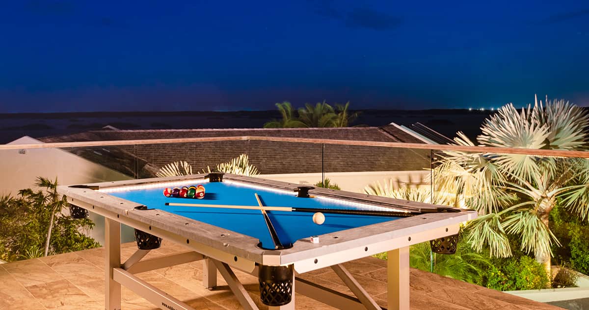 Toda la casa está diseñada en un solo nivel, con una piscina poco profunda y fácil acceso al océano, lo que la hace absolutamente ideal para familias con gente mayor o hijos pequeños. El anexo sobre la cochera ofrece una sala de juego para la familia, con un patio exterior que incluye una mesa de pool al aire libre. También se dispone de un minigimansio completo con juego de pesas, una caminadora y una máquina Bowflex. Sujeto a pedido previo y aprobación, el anexo puede convertirse en una habitación adicional con baño en suite y vista al océano.